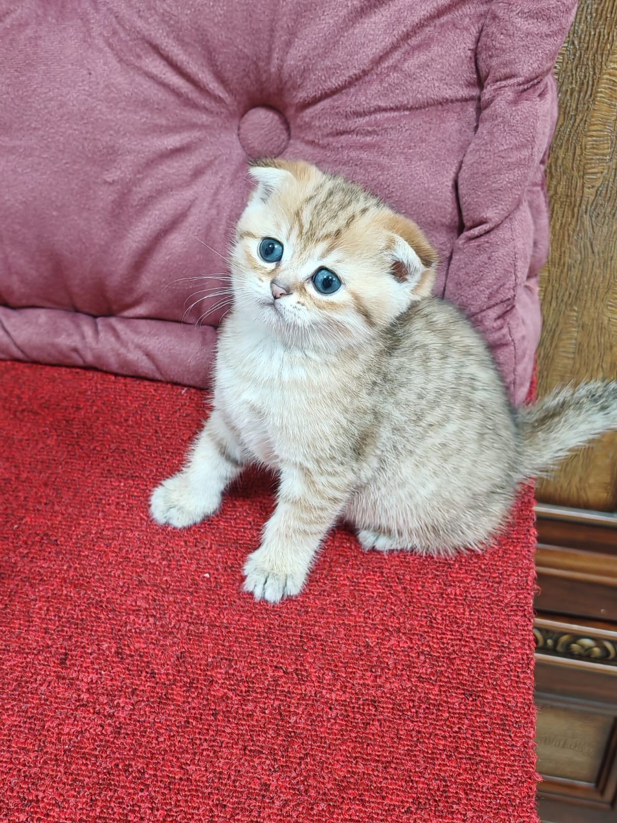 Meet our Scottish Fold Golden Chinchilla kittens, one of the most elegant and sought-after breeds in the UAE. Each kitten has a soft golden coat, round face, and folded ears that make them truly unique. Known for their calm and affectionate nature, these kittens are the perfect companions for families or individuals looking for a loving pet.